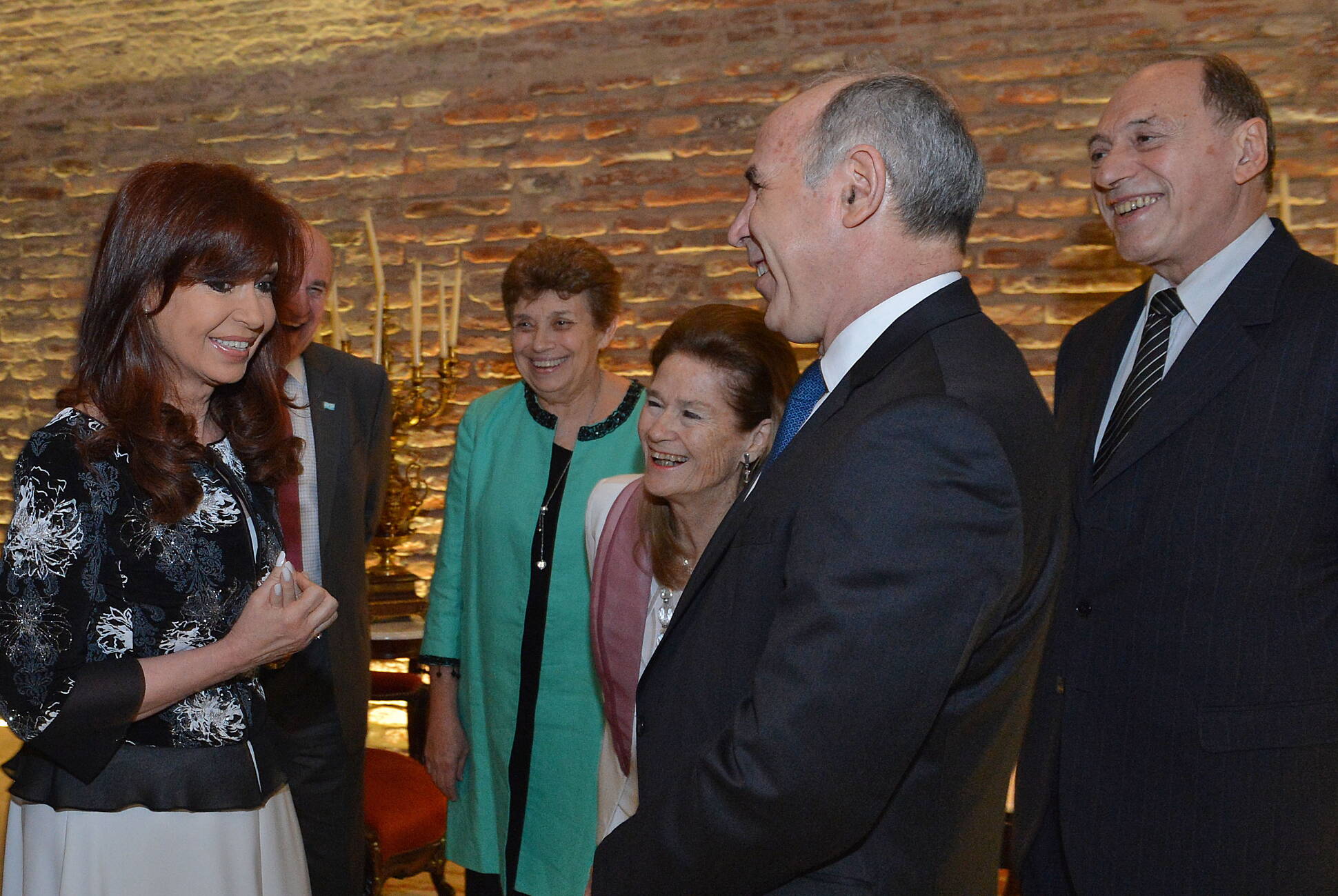 La Presidenta Cristina Fernández recibe el saludo de miembros de la Corte Suprema durante el acto de promulgación del nuevo Código Civil y Comercial ...
