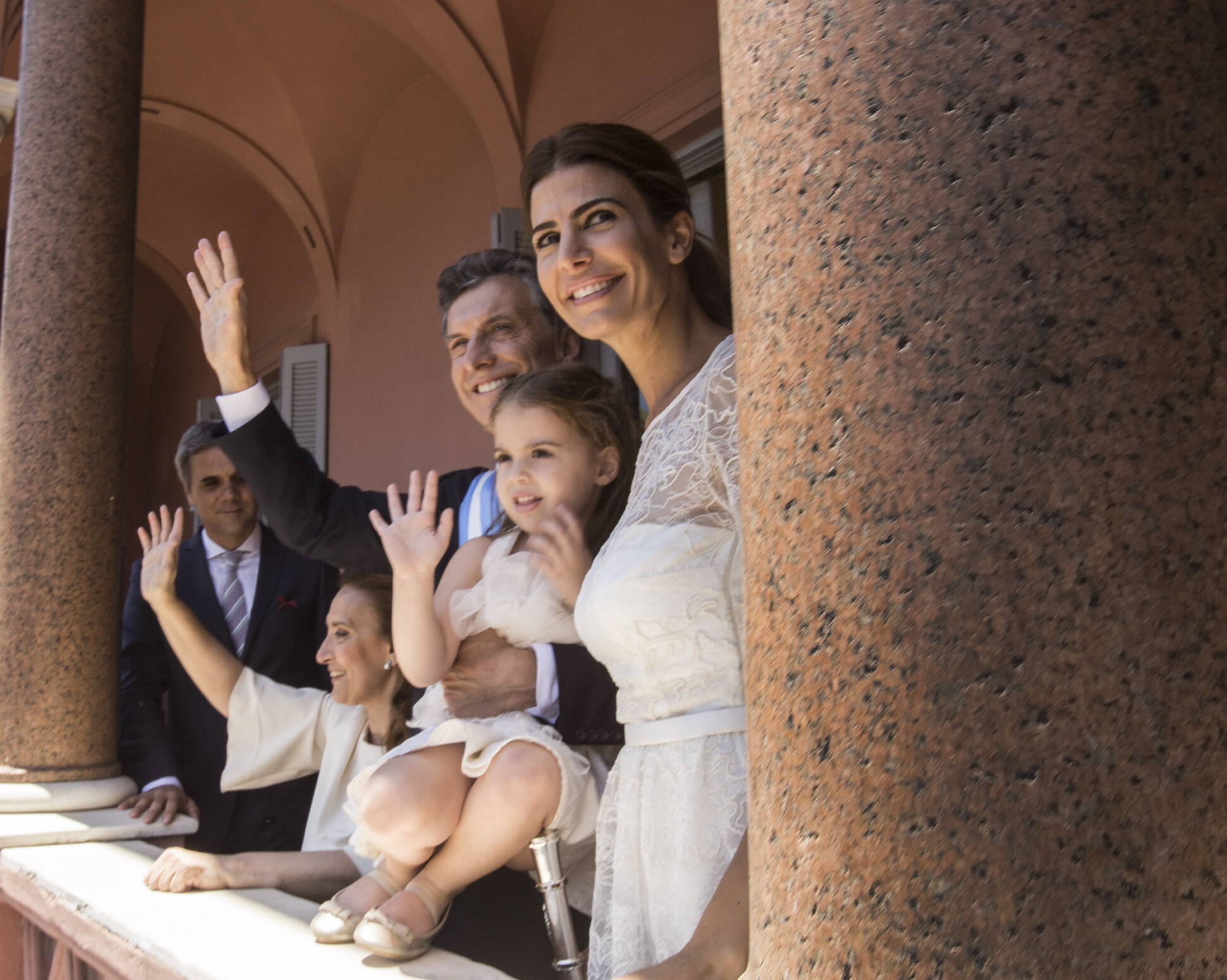 Mauricio Macri, su esposa Juliana Awada, su hija Antonia y la vicepresidenta Gabriela Michetti en el balcón de la Casa Rosada
