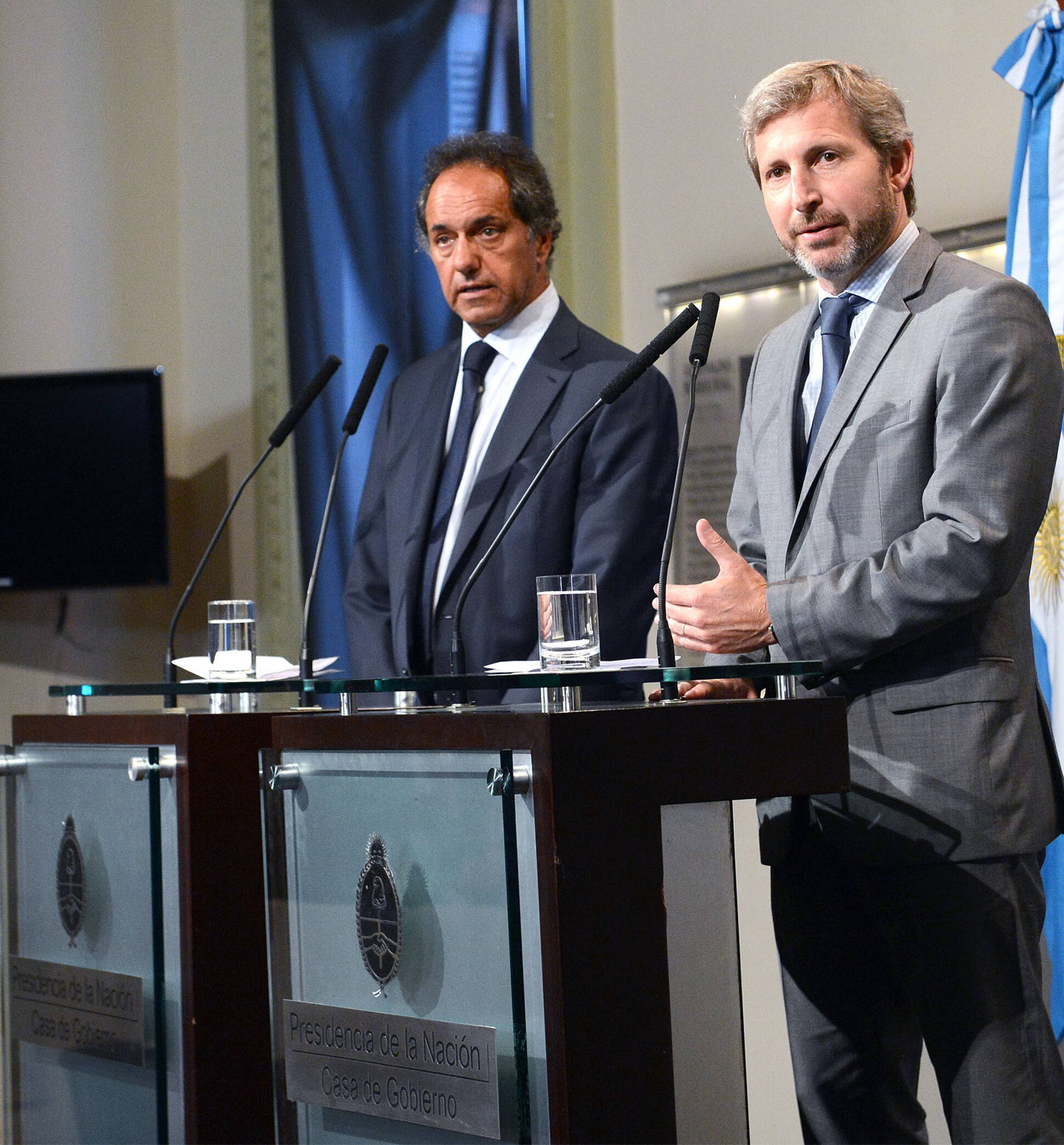 Conferencia de prensa del ministro de Interior, Rogelio Frigerio, y Daniel Scioli, en Casa Rosada.