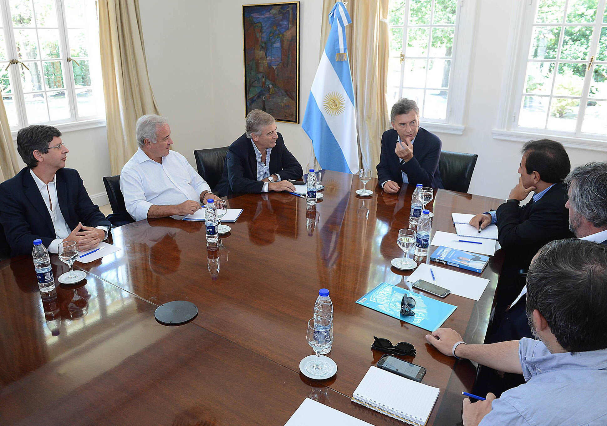 El presidente Mauricio Macri se reunió con el ministro de Comunicaciones, Oscar Aguad, y el equipo de funcionarios de la cartera.
