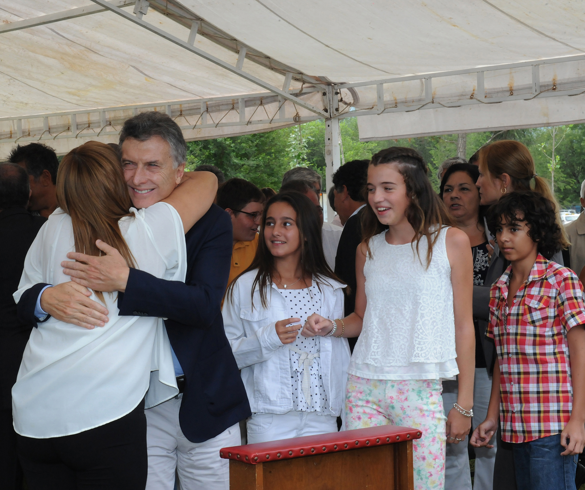 Macri recibe el saludo de varias personas que asistieron a la misa en memoria del cura José Brochero.