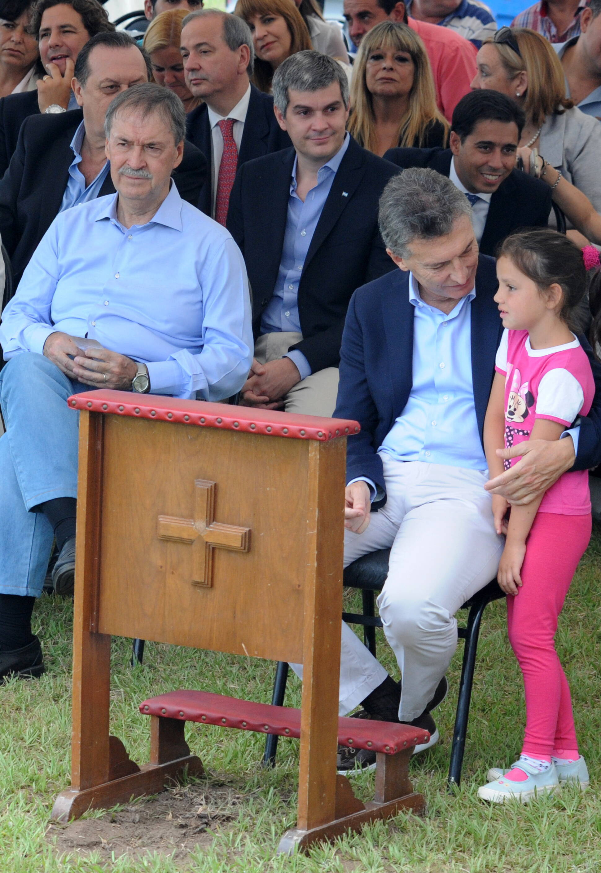 El jefe de Estado junto al gobernador de Córdoba, durante la misa en memoria del beato cura José Brochero.