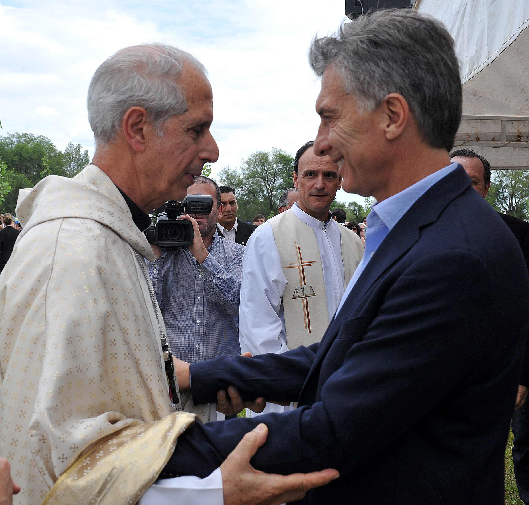 El Presidente dialoga con el arzobispo de Buenos Aires, cardenal Mario Poli, en un oficio religioso en memoria del cura José Brochero.