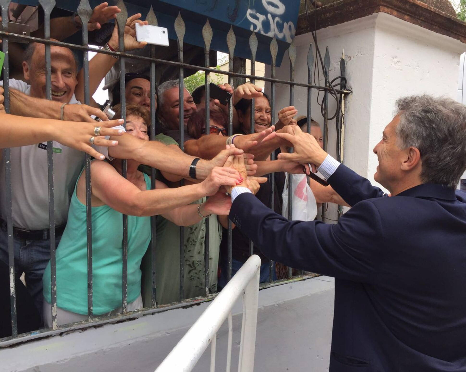 El Presidente Mauricio Macri saluda a vecinos de Quilmes momentos antes de anunciar la puesta en marcha del sistema eléctrico del Ferrocarril Roca. ...