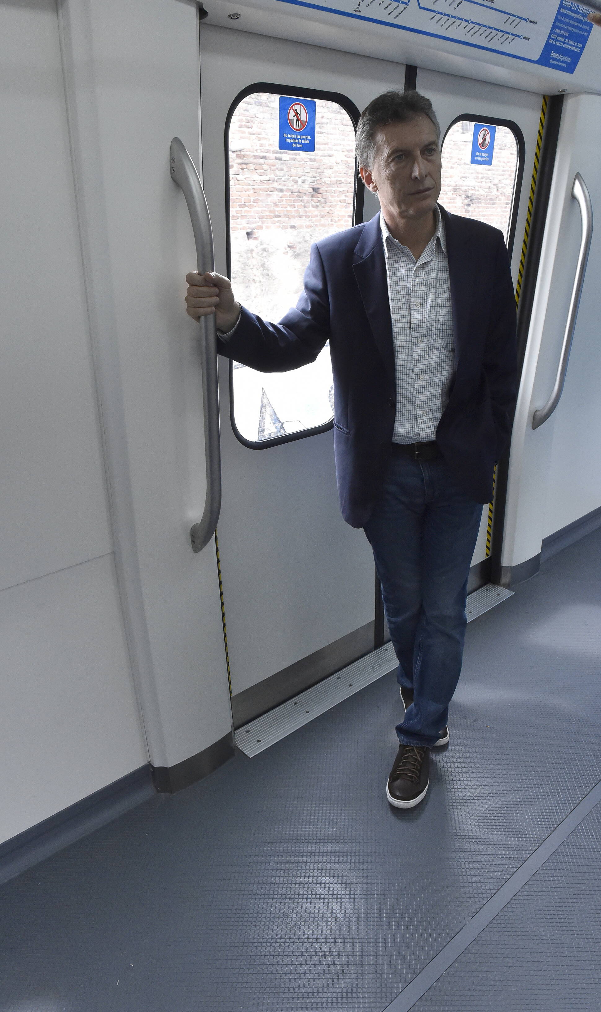 El Presidente Mauricio Macri viaja en los nuevos vagones del Ferrocarril General Roca momentos antes de anunciar la puesta en marcha del sistema eléctrico ...