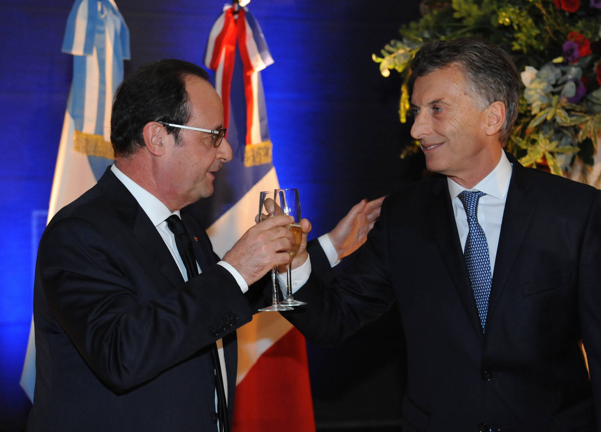 El Presidente brinda con su par de Francia, Francois Hollande, en el Museo del Bicentenario.