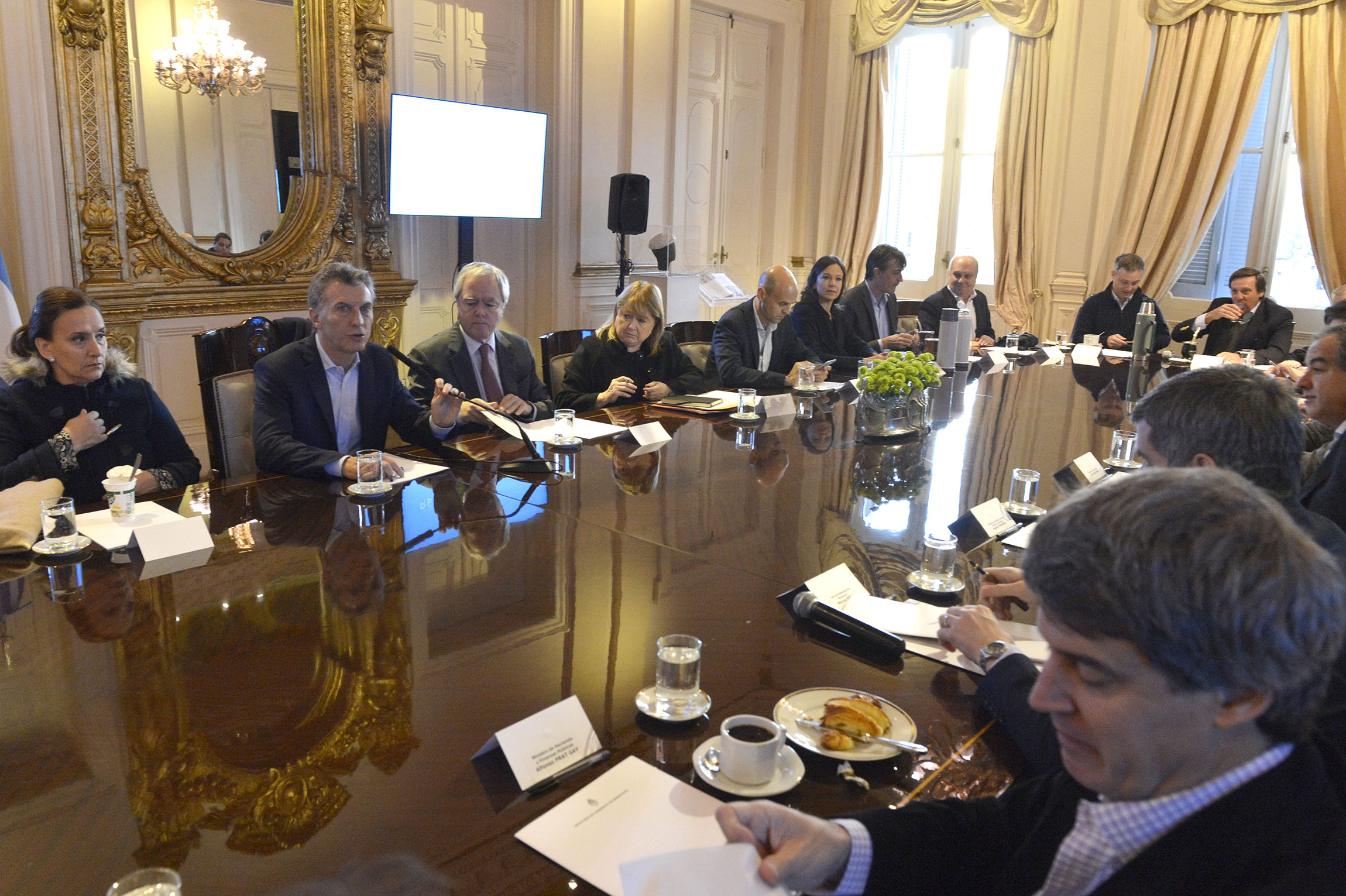 El presidente Mauricio Macri encabezó esta mañana una reunión junto a todos sus ministros en la Casa de Gobierno.