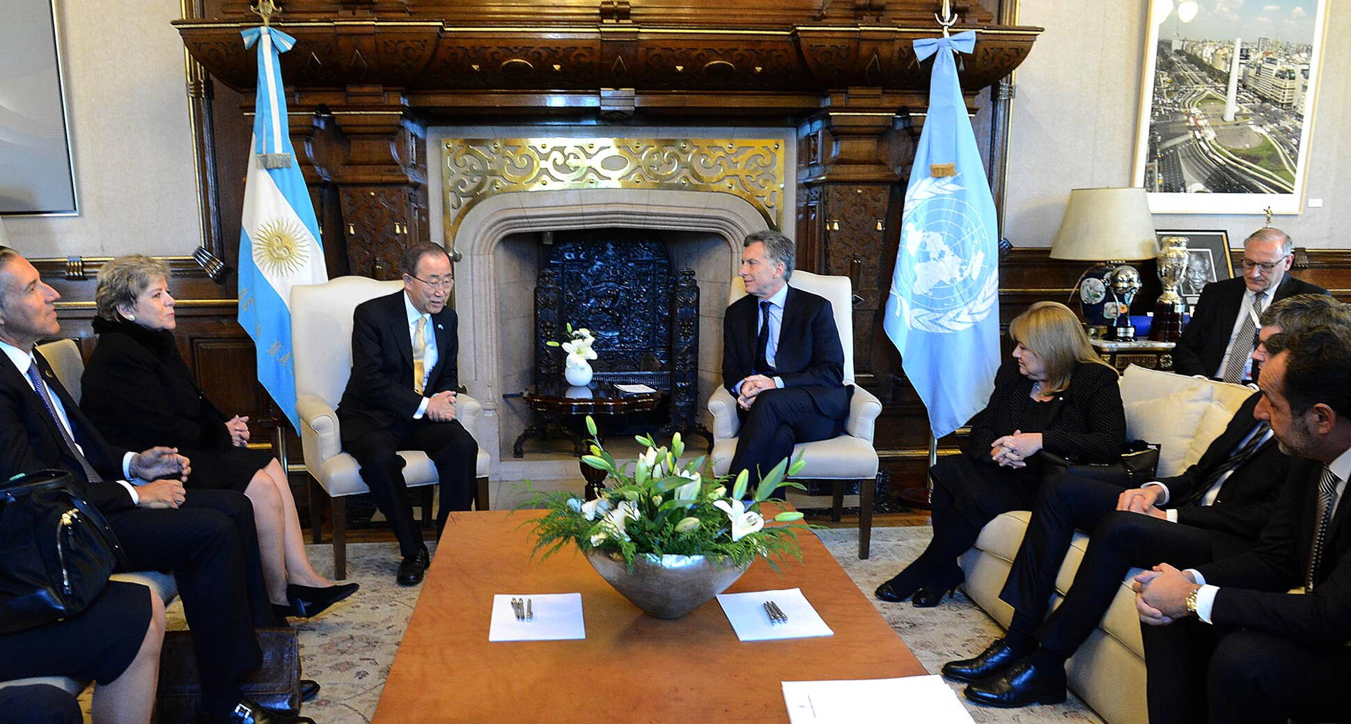 Mauricio Macri y Ban Ki-moon brindaron una declaración conjunta en el Salón Blanco de Casa de Gobierno.