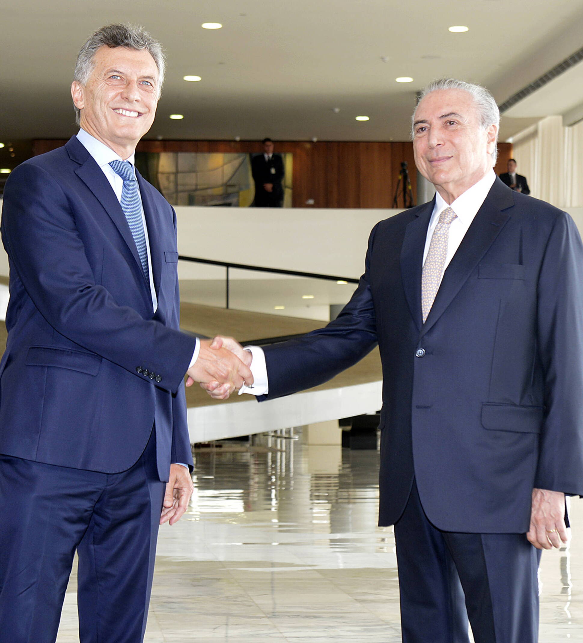 El Presidente fue recibido por su par de Brasil, Michel Temer.