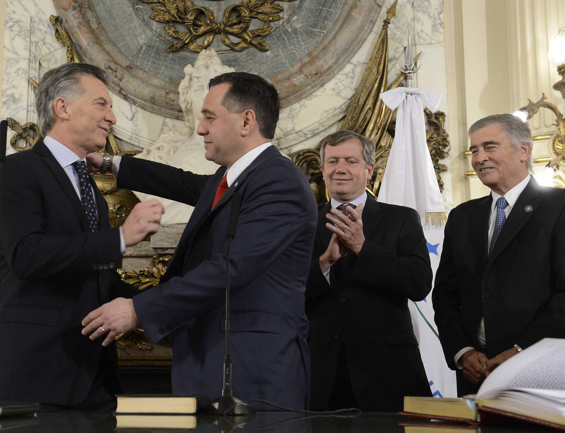 Mauricio Macri encabezó el acto de asunción de los ministros de Educación, Alejandro Finocchiaro, y de Defensa, Oscar Aguad.