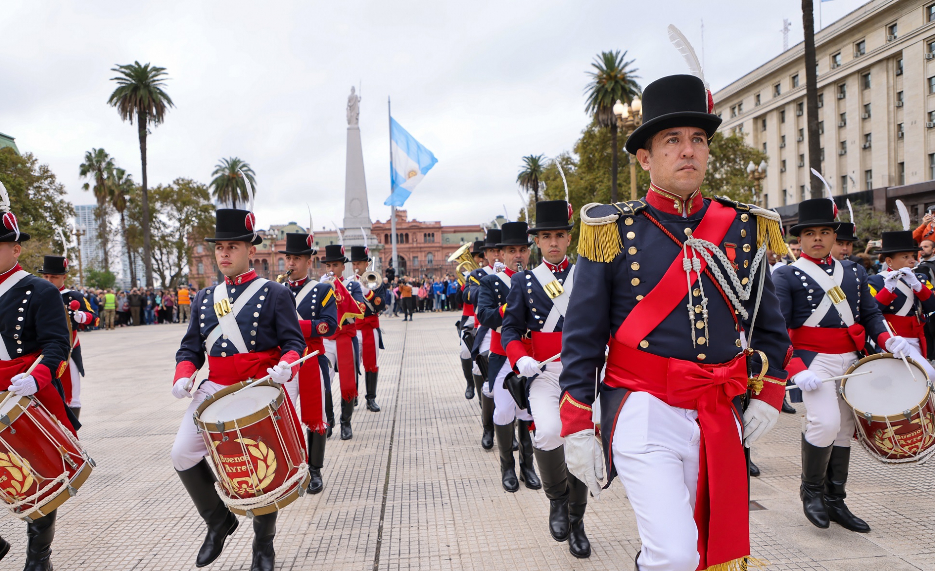 Historic Changing of the Guard with the Regiments of Grenadiers, Patricios and General Iriarte in Plaza de Mayo