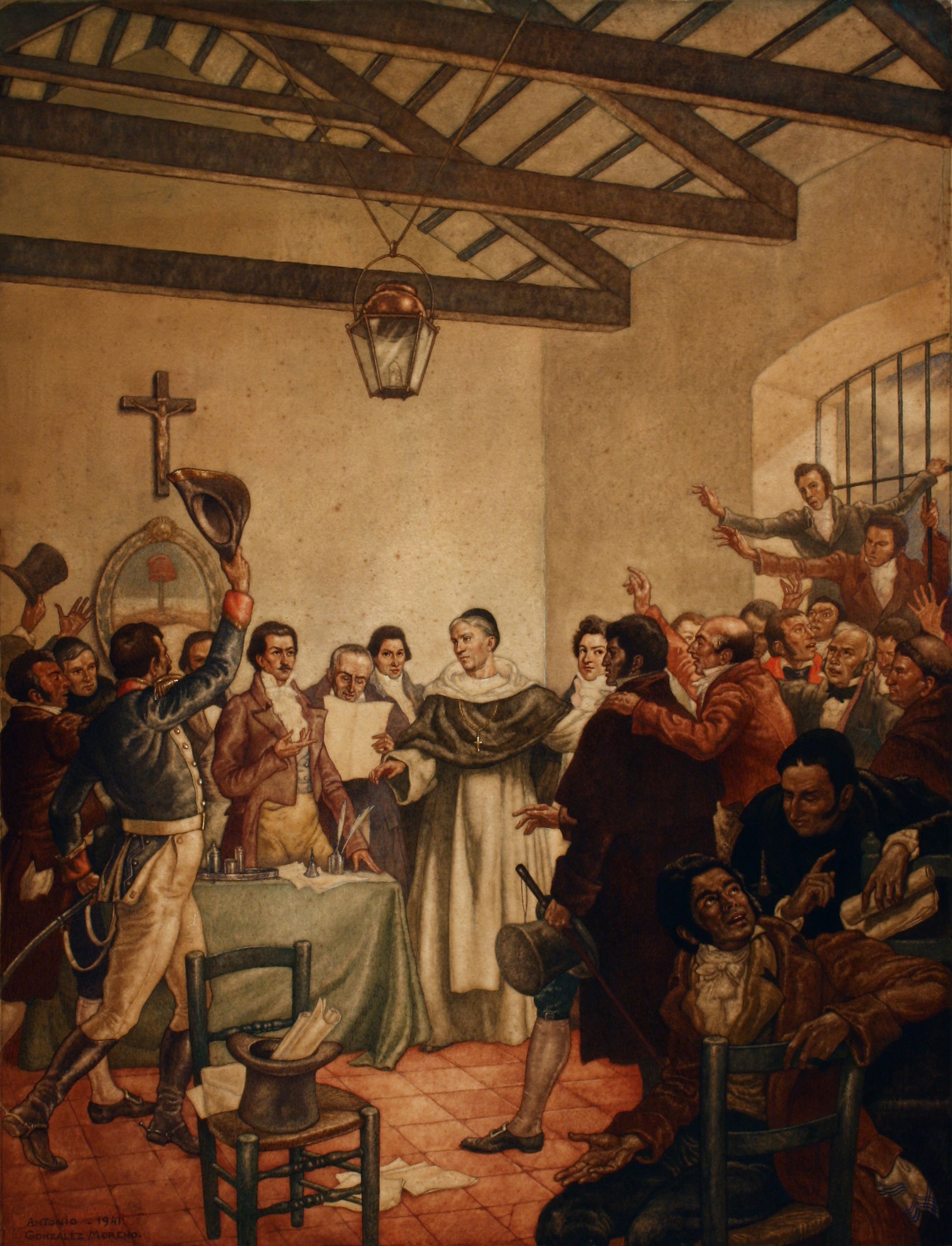 9 de Julio de 1816, acuarela de Antonio González Moreno, 1941. Es una reconstrucción artística que registra el momento de la declaración de la independencia. ...